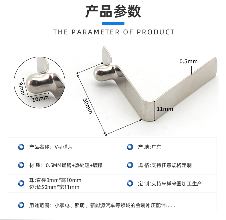 单头空心弹珠V型弹簧片定制