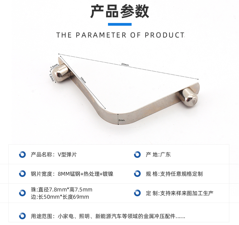 V型弹簧片双头实心弹珠JM-7.8